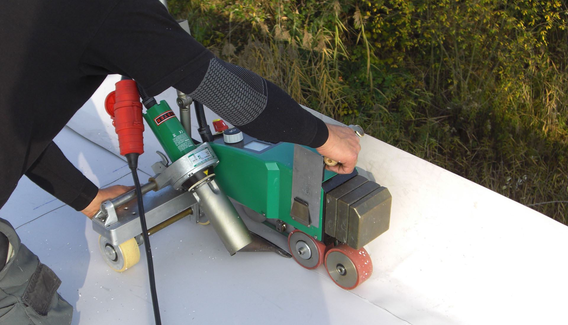 Ein sicheres Flachdach beginnt bei einer professionellen Ausführung und einer wohlüberlegten Wahl der Materialien. Sicherheit bedeutet nicht nur das Anbringen von Sicherheitseinrichtungen als Einzelpunkte oder Seilsysteme sondern bedeutet auch ein Schutz des Gebäudes. Professionelle Verarbeitungsgeräte und umfangreiche Möglichkeiten zur Dachkontrolle sind daher besonders wichtig.
