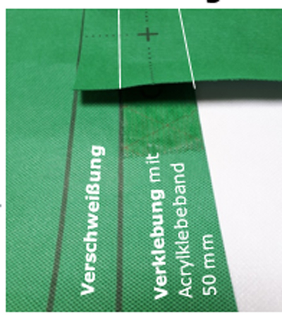 empfohlen als vorkonfektionierte Plane, aber auch direkt auf der Baustelle ist eine Verschweißung möglich. Die besonders